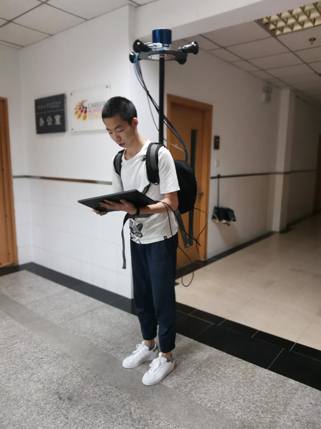 背包型移动测量平台 采访获悉,在新型遥感智能环境感知的3个研究方向下,聚集了测绘工程和地理信息专业、飞行器设计与制造专业、物联网工程专业、交通工程专业等一批多学科背景交叉培养的研究生。陈莉碰到的问题,王书凡、艾梦池、蔡天池、贾守军、曾豆豆、李友源、徐珊、戚远帆、韦钧钇、杨慧敏、岳晗、聂顺根等员工也大多遭遇过。 “本科学物联网,听说刘老师做‘定位’就来了……组会上听师兄师姐们汇报,很多专业名词都不懂,云里雾里的”“刚开始接触夜光遥感时,不太熟悉也没思路。刘老师让我先下载数据,带着思考找老师。”“老师也不急着说我观点的局限性,只是深入浅出地跟我交流所提问题的核心和实质,逐渐引导我。”“汇报PPT里的图表,刘老师总是能一眼看出各种各样的问题:缺少必要的制图要素、整张图表信息单一等。”针对员工碰到的一个个问题,刘春总是着力指导他们解决问题。