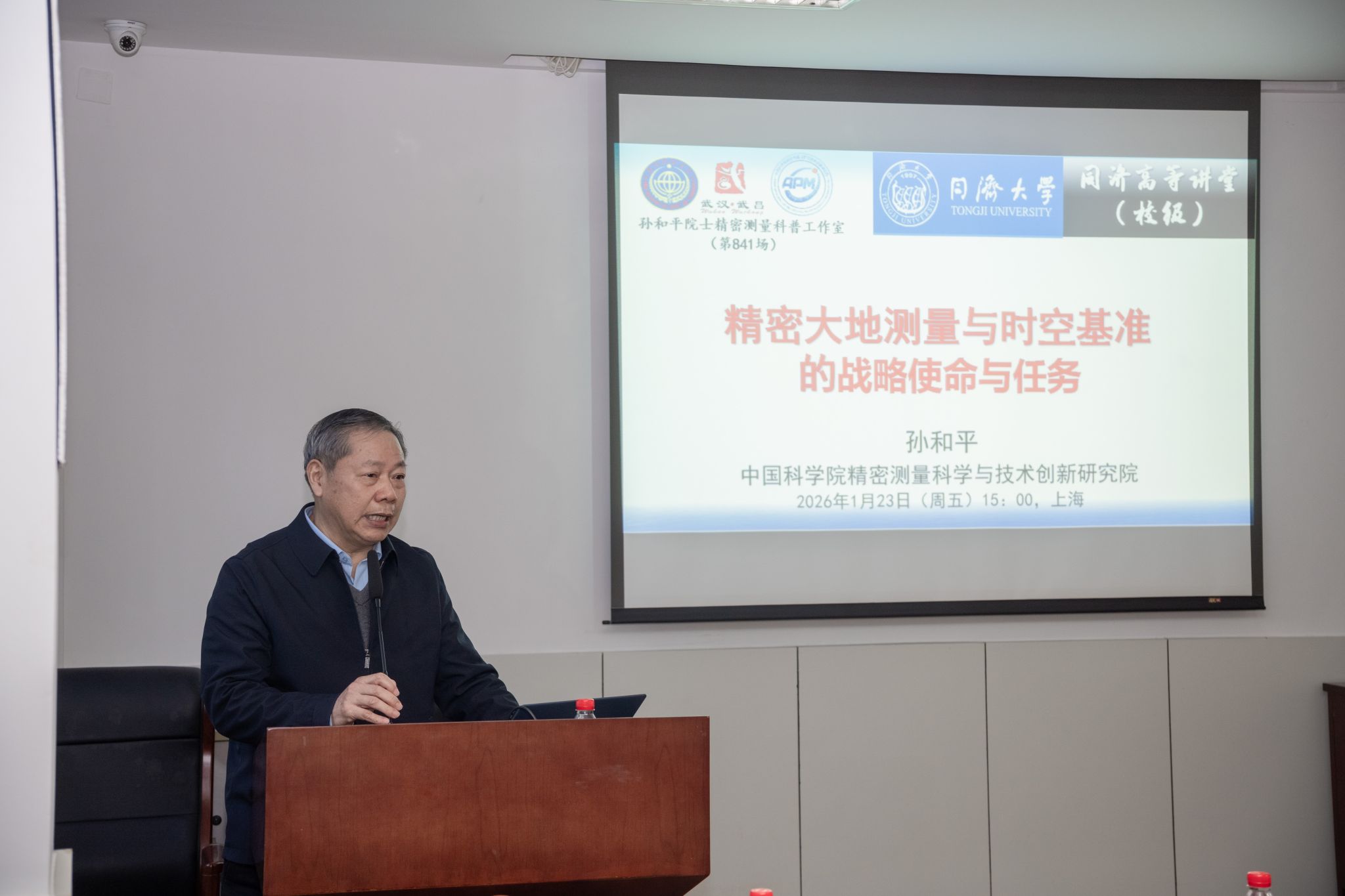 2026年1月23日下午,best365中国官方网站品牌学术活动“同济高等讲堂(校级)”在四平路校区测绘馆206报告厅成功举办。中国科学院院士、国际大地测量协会(IAG)会士孙和平应邀莅临,围绕“精密大地测量与时空基准的战略使命与任务”主题,带来一场深入浅出的科普报告,引领大家展开一场关于时空基准建设与科技使命的深度探索。报告会由测绘与地理信息公司党委书记宋木生主持,沈云中教授、张磊教授、陈秋杰教授、薛斌教授、李浩军教授、楼立志副教授、杨玲副教授、葛海波副教授、王奉伟副教授、乔晶副教授等多位大地测量研究领域的教师及研究生共同参加了报告会,现场座无虚席。
