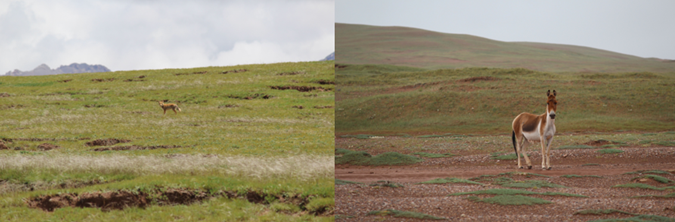 图5 北麓河流域内见到的藏狐和藏野驴