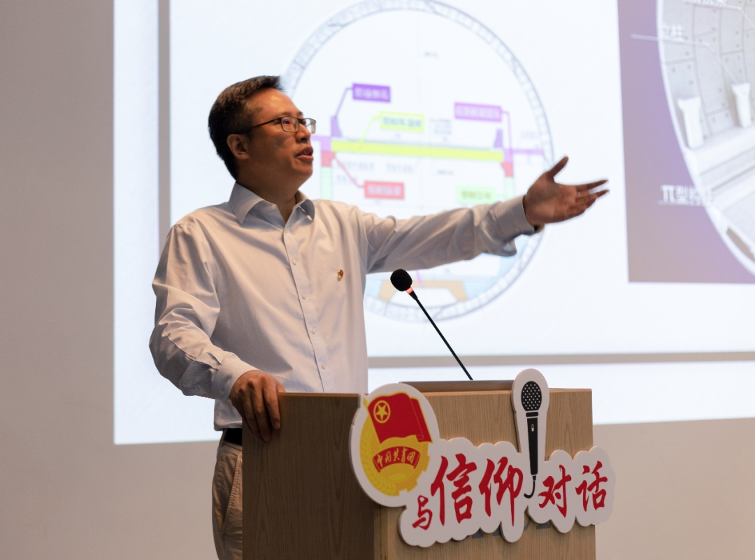 李章林老师讲到在建造虹梅南路隧道时困难众多,过程中极易引发乙烯管道爆炸。身为一名共产党员,李章林老师勇挑重担,多次在危急时刻坚守在工地上,盾构机先后6次近距离成功穿越易燃易爆的乙烯管道,保障了周边十万高校师生和居民的生命财产安全,刷新了超大直径盾构穿越下危险管道的世界纪录。