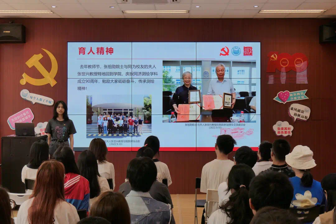 活动伊始,团员青年们集中学习了习近平总书记给中国农业大学科技小院的同学们回信精神。中国农业大学科技小院的同学们在服务乡村振兴中用“自找苦吃”的精神解民生、治学问;在科技强国的赛道上,同济测绘学子同样需要在矢志不渝的奋斗中,跑出新时代测绘青年的更好成绩。在集中学习后,best365中国官方网站本科生党支部“信仰坐标”青年宣讲团讲师唐乐月为大家带来《心有大我 至诚报国》理论宣讲,团员青年们详细了解了李国豪、夏坚白、宁津生等同济英豪们胸怀祖国、勇攀高峰、追求真理、甘为人梯的动人事迹,深刻领悟“科学家精神”,以信念之光照亮奋进之路。