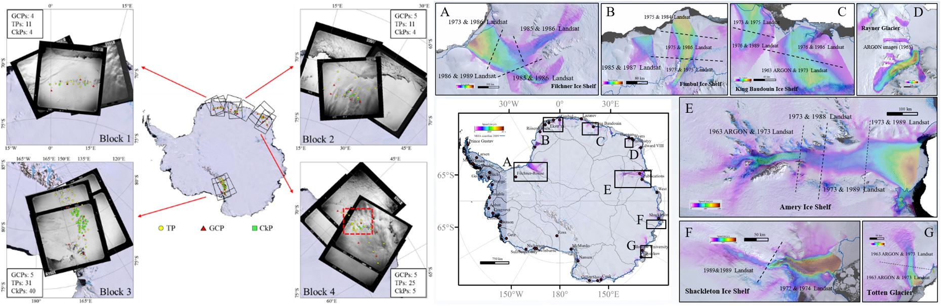 3.1960年代解密胶卷卫星影像的现代化摄影测量与南极冰流速度制图:提出了1960年代早期胶卷卫星影像的现代化摄影测量建模新方法,研制了1963年东南极典型区域冰流速度图,将国际上南极冰盖研究时间尺度向前拓展了30年;成果发表于Photogrammetric Engineering and Remote Sensing期刊。